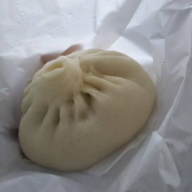 蒸したて提供、一個160円という良心的なお値段なのに、普通大きい!関西の有名な◯◯1の豚まんより一回り大きい感じ。
