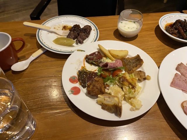 ディナーバイキングに子どもと一緒に行きました。 いつもはランチで来ることが多いのですが、ディナーは初めてです。夜景がきれいで、美味しいものをたくさんいただきました。 牛肉のステーキは焼きたてをいただけます。わさびバターソースはとても合いました。子ども用に甘口のソースもありますが、小3の息子も辛くないとわさびバターソースの方を食べてました。スタッフはみなさんとても親切で、子どもがいると特に気にかけてくれます。心もお腹もとても満たされたディナーになりました。