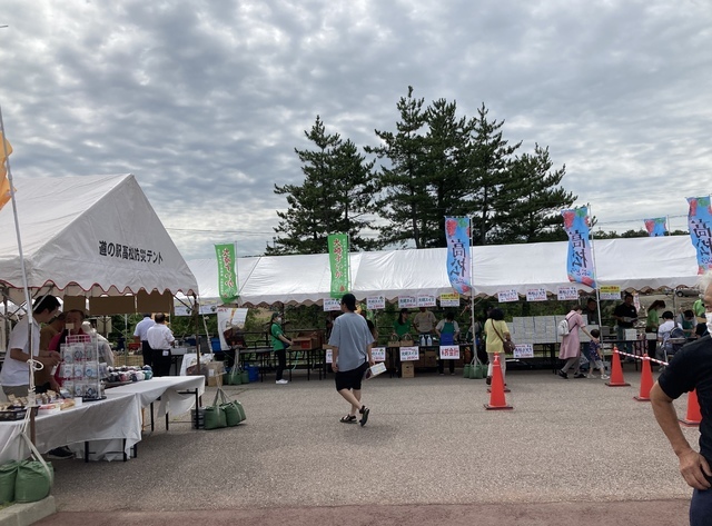 さとやまマルシェに行って来ました。 高松ぶどうや大崎スイカ、地元野菜の販売、繊維業が盛んなかほく市の繊維関係の出店などがありました。 ぶどうとスイカは人気で毎年すぐに売り切れてしまいます。 道の駅店内でおにぎりを購入。 かほく市さんのお米で作ったおにぎりはとても美味しいです。 (投稿:2023/07/15 掲載:2023/07/18)