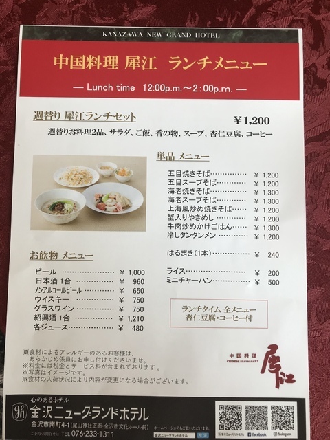 金沢ニューグランドホテル プレステージ 中国料理 犀江 (城下町犀川浅野川間・涌波エリア / 中華)