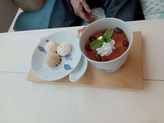 数日前予約して10時半に伺う。窓際空いていたのでそちらにお願いし座る。天気もよくソファーにゆったりクッションによりかかり、雲も見える。窓辺に海の雑貨もあり、心地よい海を満喫。前から面白いと思っていた塩味ソフトクリームを頼む。可愛くポップな見た目、塩味ジェラートといった感じ。連れは、ほうじ茶プリン、甘み抑えめ。和風パフェは、美味しかったとか。今度はランチも食べてみたいなー (投稿:2023/04/20 掲載:2023/04/20)