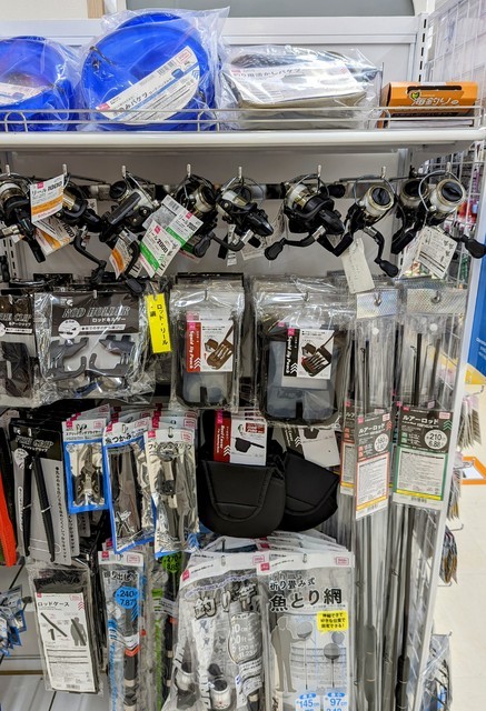 此方のダイソーさんを覗かせていただくのは初めてでしたが、ショッピングモールで展開している割には売場面積が広いことに少し驚きました。正面に置かれていたアウトドアグッズを横目に入店すると、なんと!釣具が豊富に並んでいて更に驚きました。100円ではありませんでしたがリールや竿もあり小物も充実していて、折角だったので仕掛けとオモリを補充させていただきました。思わぬ所で素敵な発見をしました。 (投稿:2023/04/09 掲載:2023/04/10)