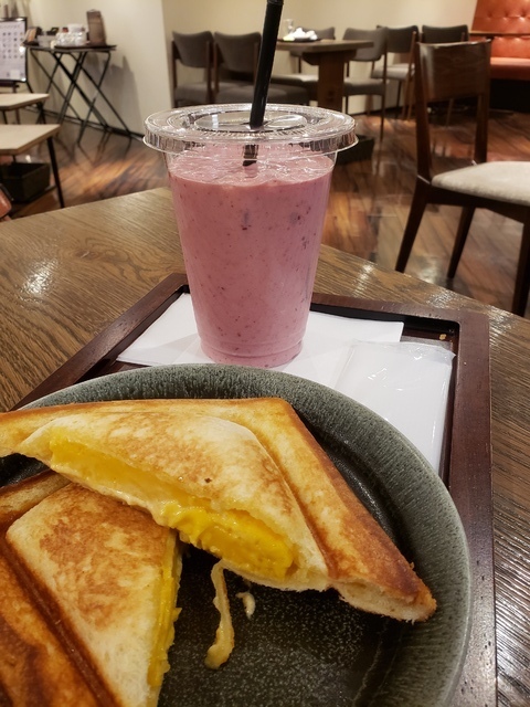 ベリーとバナナのスムージーと、たまごと明太マヨのホットサンド 頂きました。 スムージーはかなり濃厚で美味しかったです。 落ち着いた店内で、またゆっくり行きたいな (投稿:2020/04/10 掲載:2020/04/13)