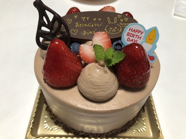 家族が私の誕生日に事前予約でバースデーケーキを注文してくれていました。 ケーキのスポンジがふわふわで軽くて甘さ控えめで大好きなケーキ屋さんです。 チョコレートのホールケーキに誕生日プレートが飾ってありとても可愛いケーキでした。 プレートの文字や絵の可愛さが何とも言えずほんわかとします。 家族みんなで美味しくペロリと食べました。 (投稿:2019/08/27 掲載:2019/08/28)
