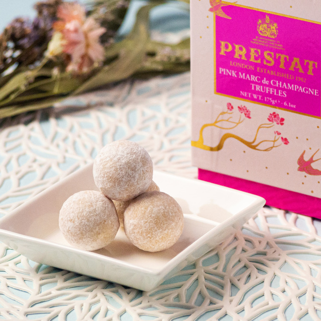 その中でも今回ご紹介するのは、かのエリザベス女王やダイアナ妃が愛したPRESTAの看板商品、そして最高傑作と言われているトリュフチョコレート<ピンクシャンパントリュフ>です。